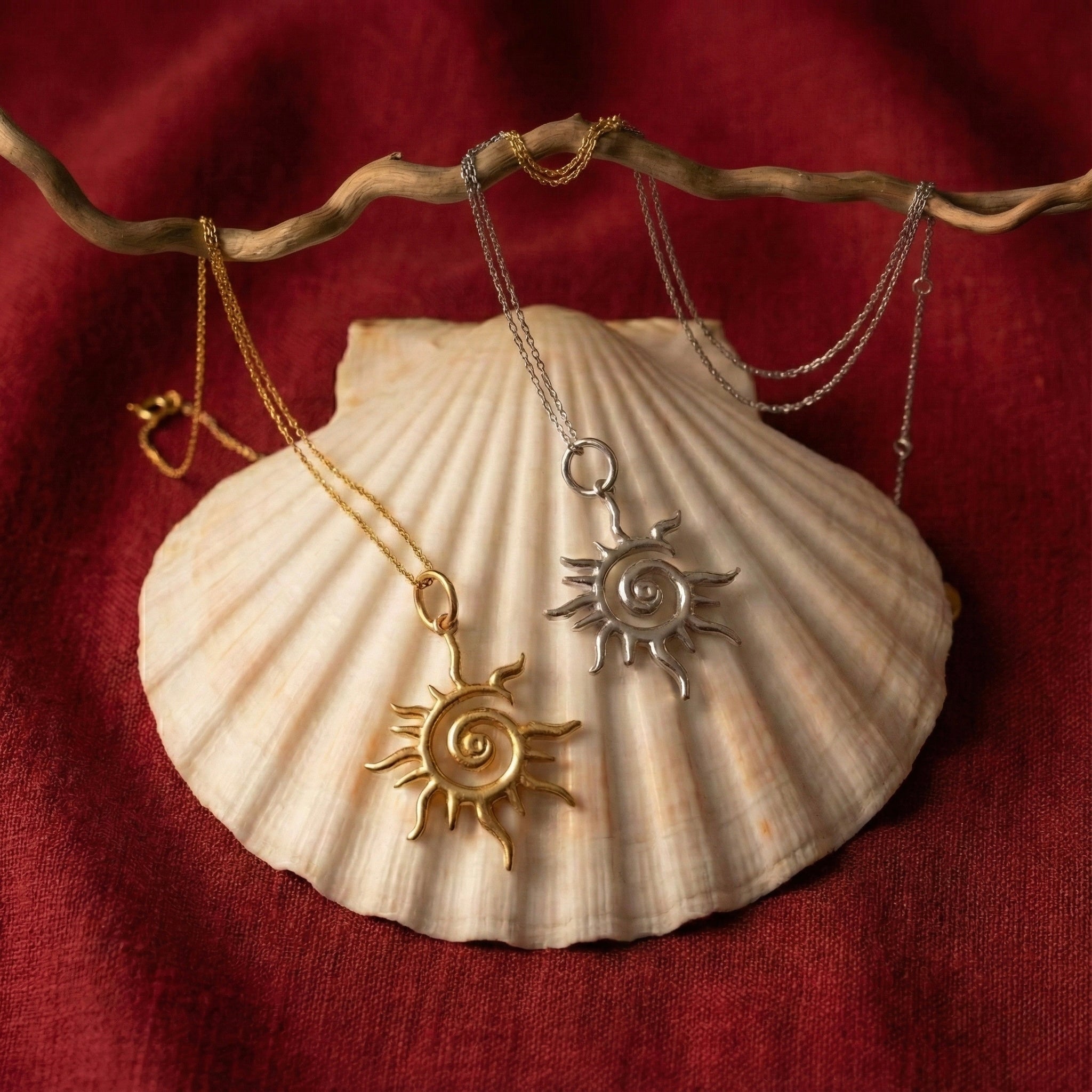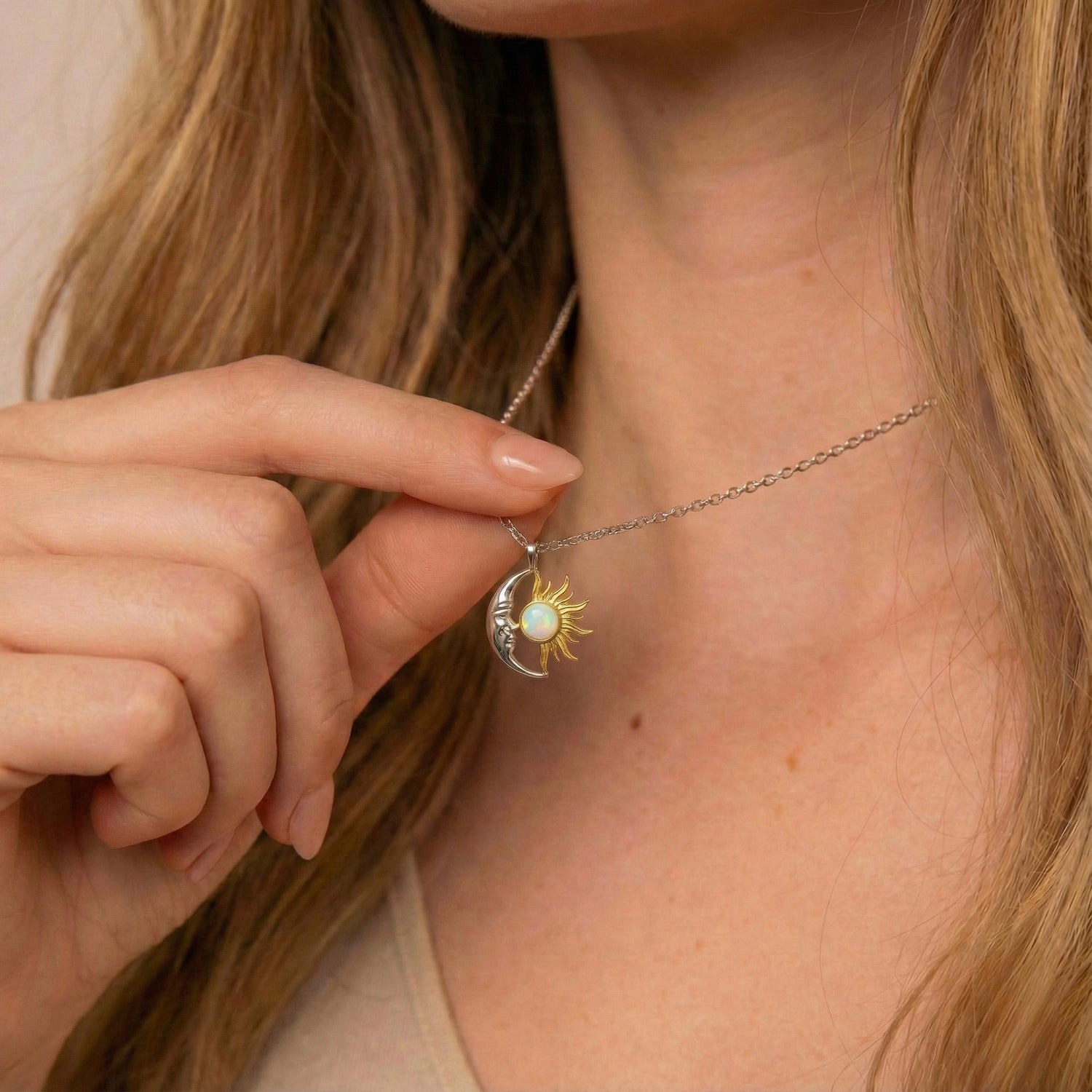 Ay ve Güneş Opal Kolye - 925 Ayar Gümüş & 14K Altın Kaplama
