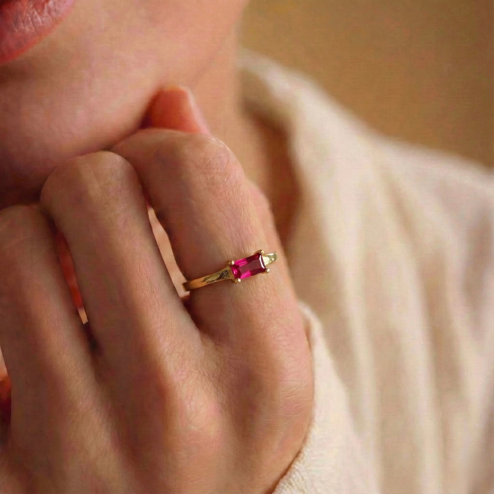 Magenta Baguette Yüzük