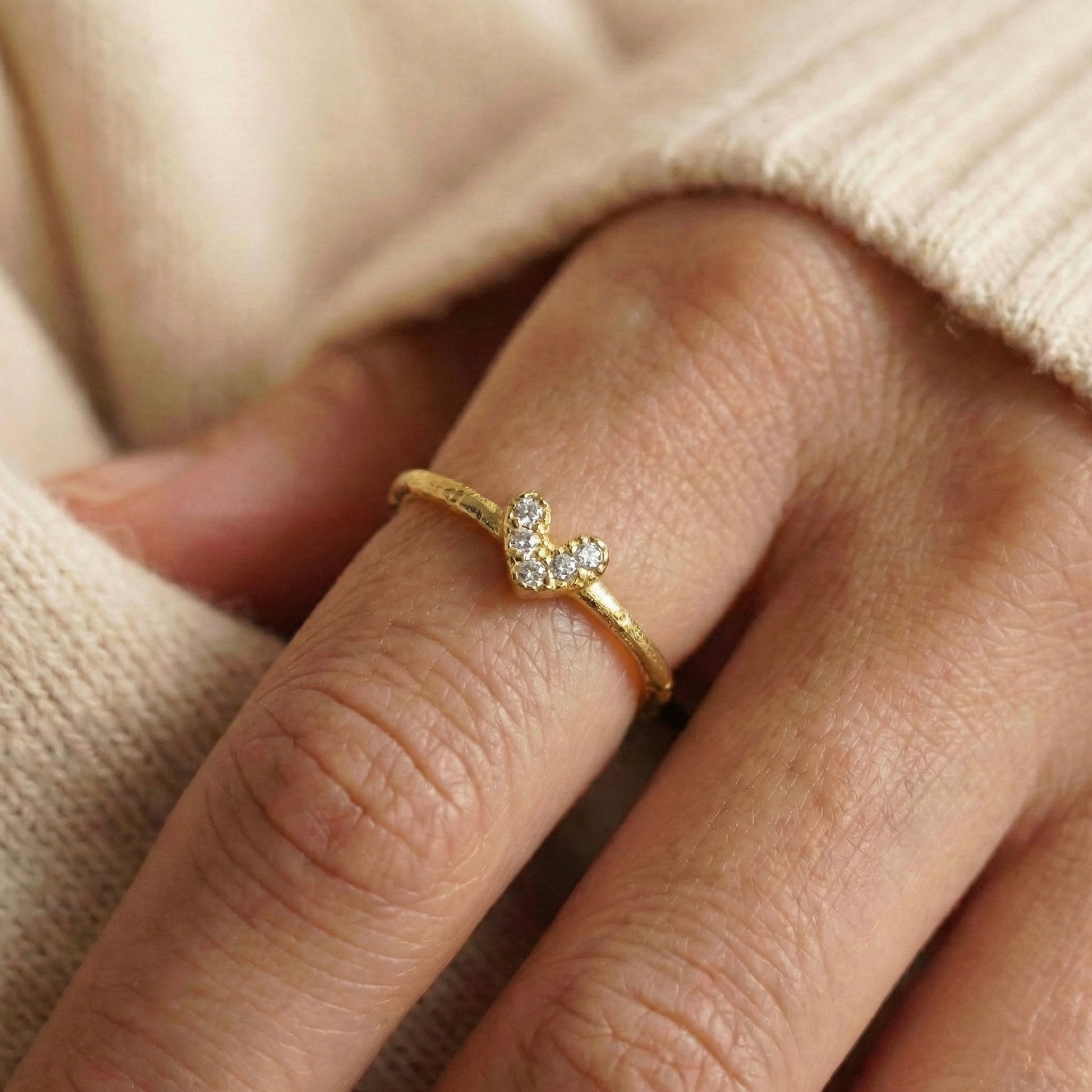 Sevginin en saf sembolünü parıltılı taşlarla taçlandıran bu tasarım, stilinize zarif ve romantik bir dokunuş katar. Merkezindeki taşlarla bezeli kalp figürü, el işçiliğiyle dokulandırılmış organik bant yapısıyla birleşerek modern bir görünüm sunar. Hem günlük kombinlerinizde narin bir ışıltı olarak kullanabilir hem de sevdikleriniz için anlamlı bir hediye seçeneği olarak değerlendirebilirsiniz. Her bir Minon parçası usta zanaatkarların elinde şekillenir; bu nedenle el işçiliğinin doğasından kaynaklanan minik detay farklılıkları her tasarımı eşsiz ve size özel kılar.