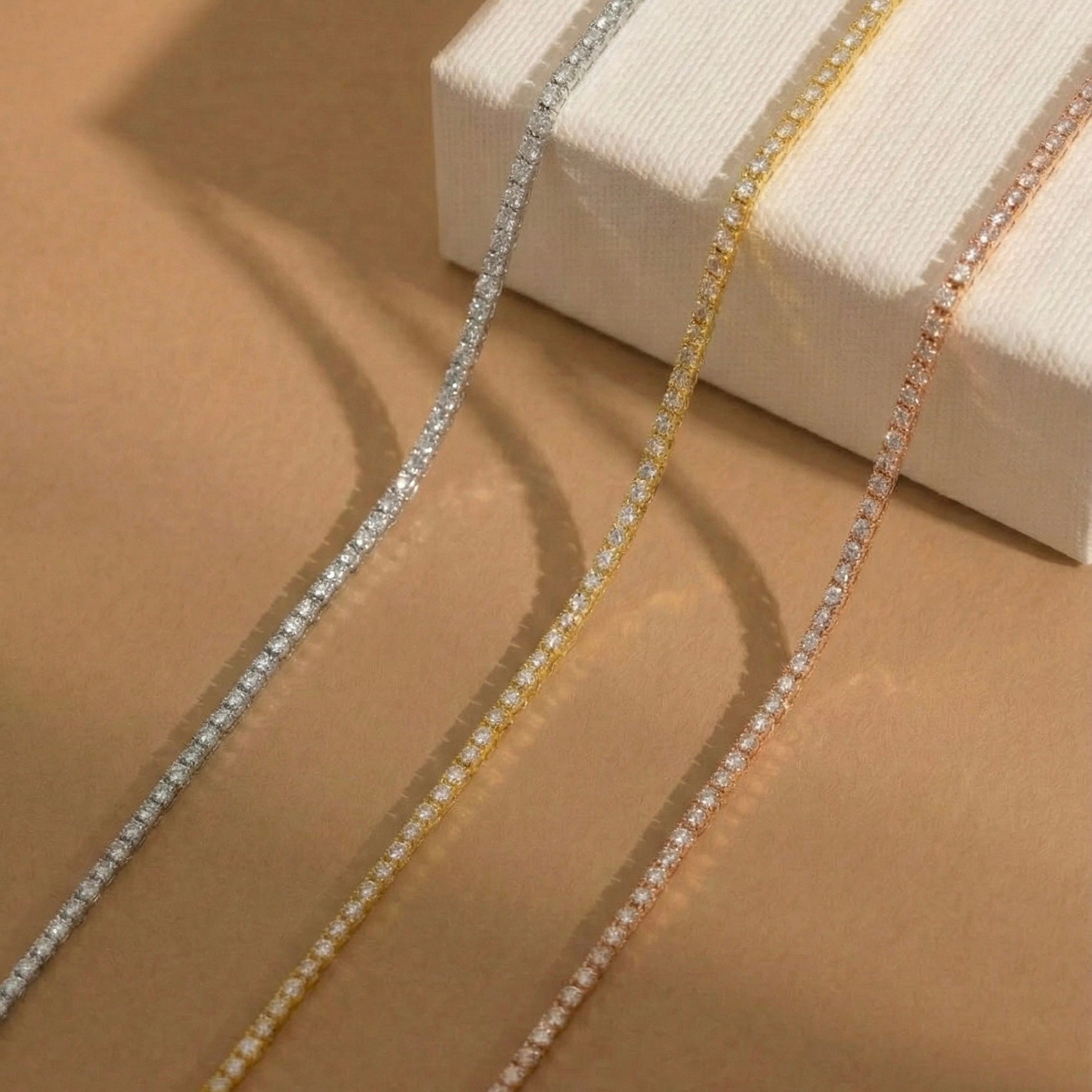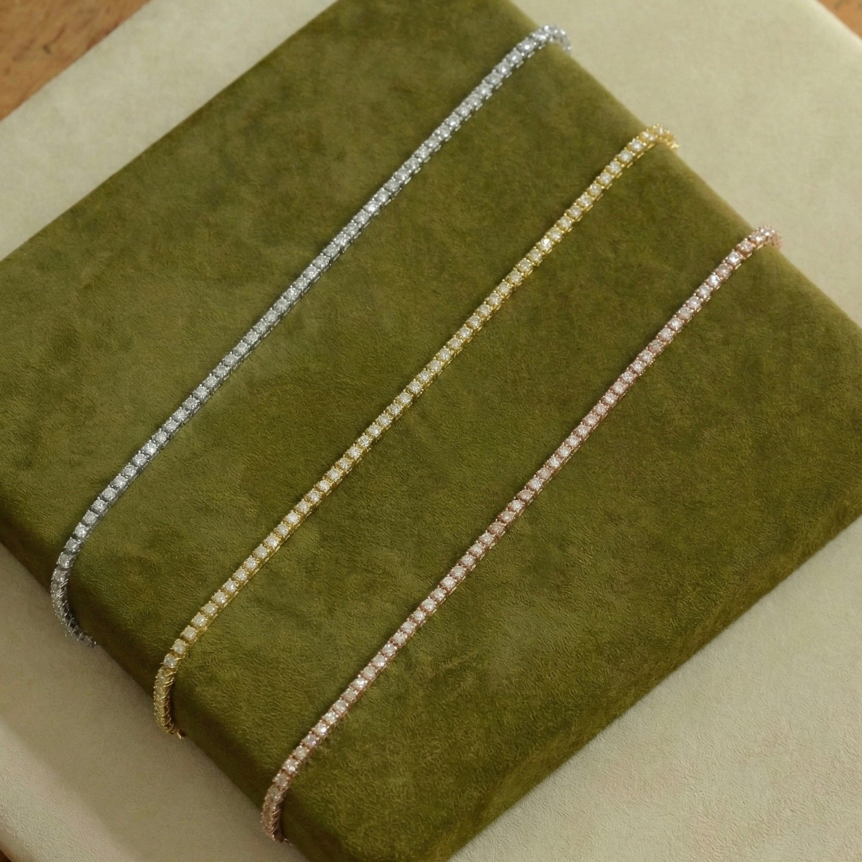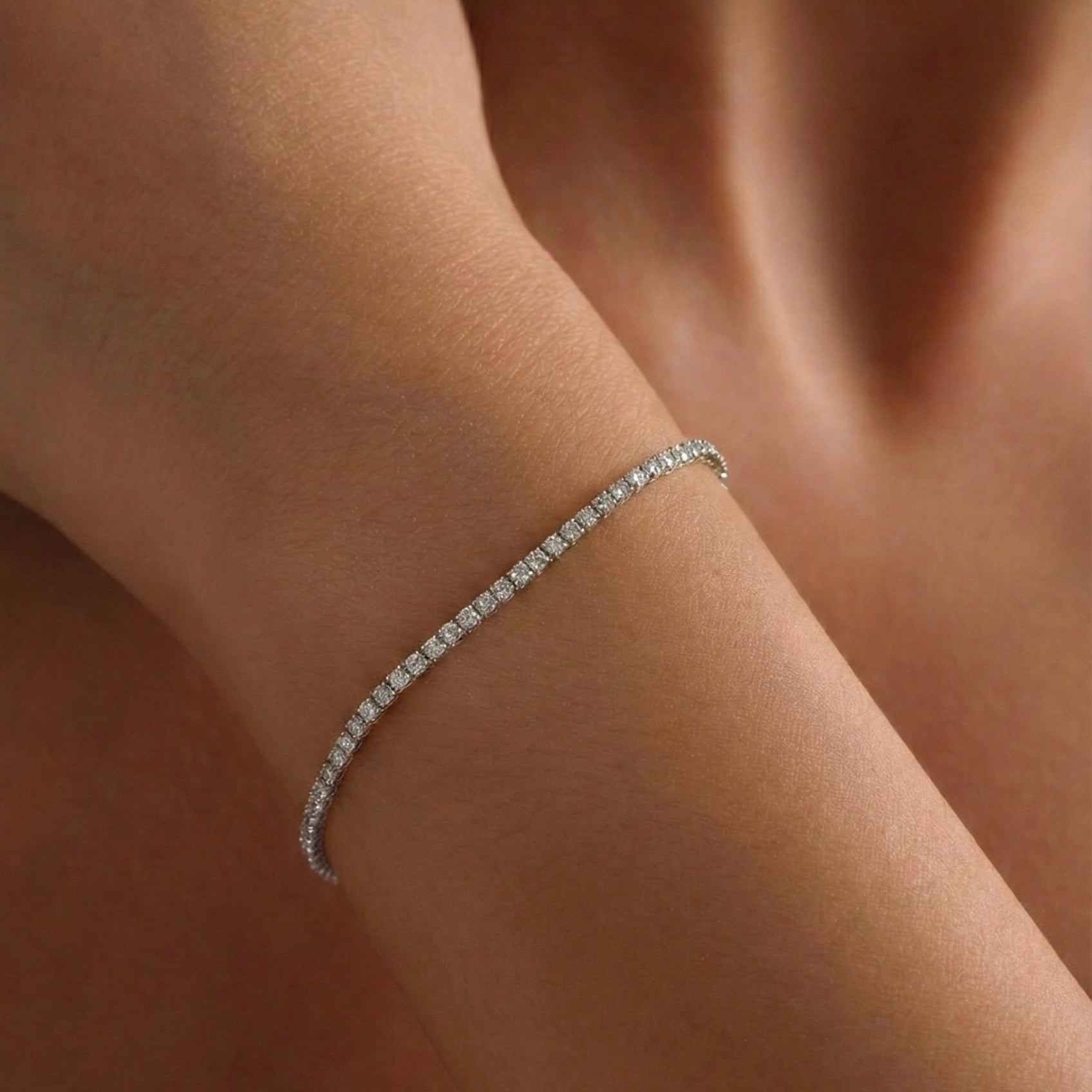 Zarafetin en saf ve en ince haliyle tanışın. Aura Petite, klasik su yolu (tennis) tasarımını ultra ince bir formla birleştirerek bileğinizde adeta ışıltılı bir ip gibi süzülür. Kesintisiz mikro kristal taşların yarattığı bu narin parıltı, gün boyu konforlu bir kullanım sunarken stilinize sofistike bir imza katar. Tek başına minimalist bir şıklık için ideal olduğu gibi, diğer bilekliklerinizle bir araya getirerek katmanlı (layering) bir görünüm oluşturmak için de mükemmel bir temel parçadır.
