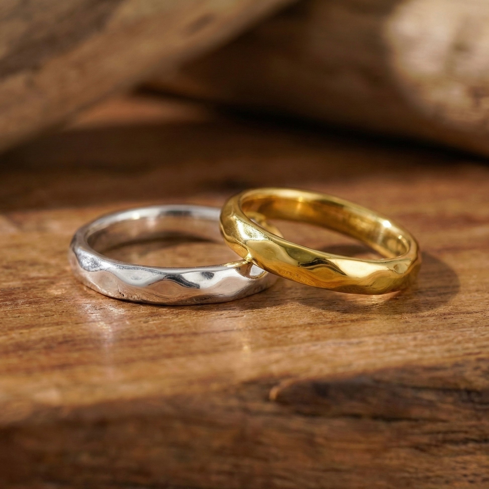 İki ruhun birbiriyle olan kusursuz uyumundan ve doğanın işlenmemiş dokusundan ilham alan bu tasarım, bağlılığı en saf haliyle simgeleyen iki adet yüzükten oluşan özel bir settir. Yüzeyindeki el işçiliği dövülmüş detaylar, ışığı her açıdan farklı yansıtarak "Sessiz Lüks" estetiğini parmağınıza taşır. Zarif ve zamansız formuyla hem tek başına asil bir duruş sergiler hem de diğer yüzüklerle kombinlemek için mükemmel bir temel oluşturur. Her bir Minon parçası usta zanaatkarların elinde şekillenir; bu nedenle el işçiliğinin doğasından kaynaklanan minik detay farklılıkları her tasarımı eşsiz ve size özel kılar.