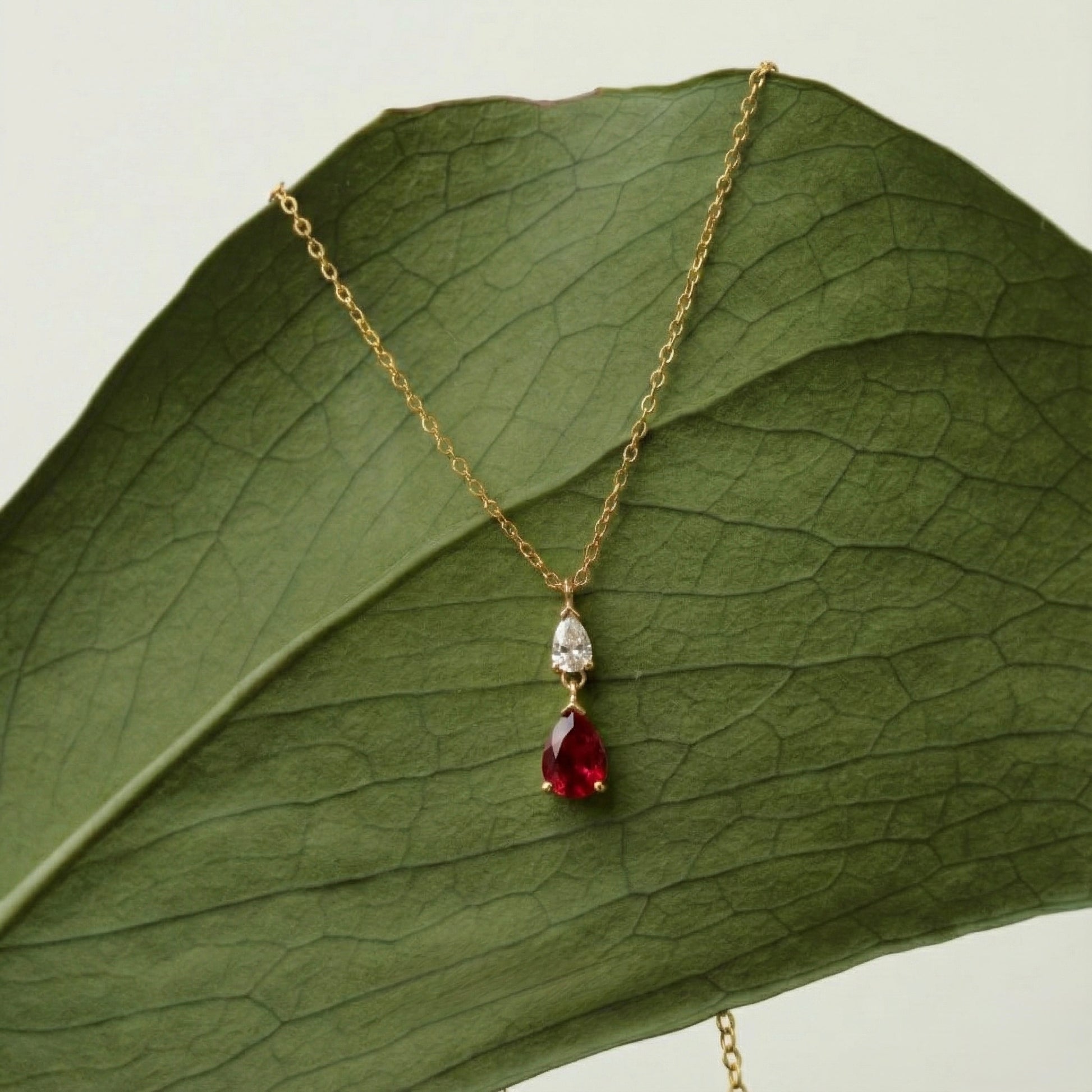 Doğum Ayınızın Enerjisini Zarafetle Taşıyın Doğduğunuz ayın anlamını ve ışıltısını, tutkulu kırmızı damla taşın asaletiyle boynunuzda taşıyın. Üst kısmındaki berrak pırlanta kesim zirkon detayıyla tamamlanan bu kolye, kişisel hikayenizi en şık haliyle yansıtır.