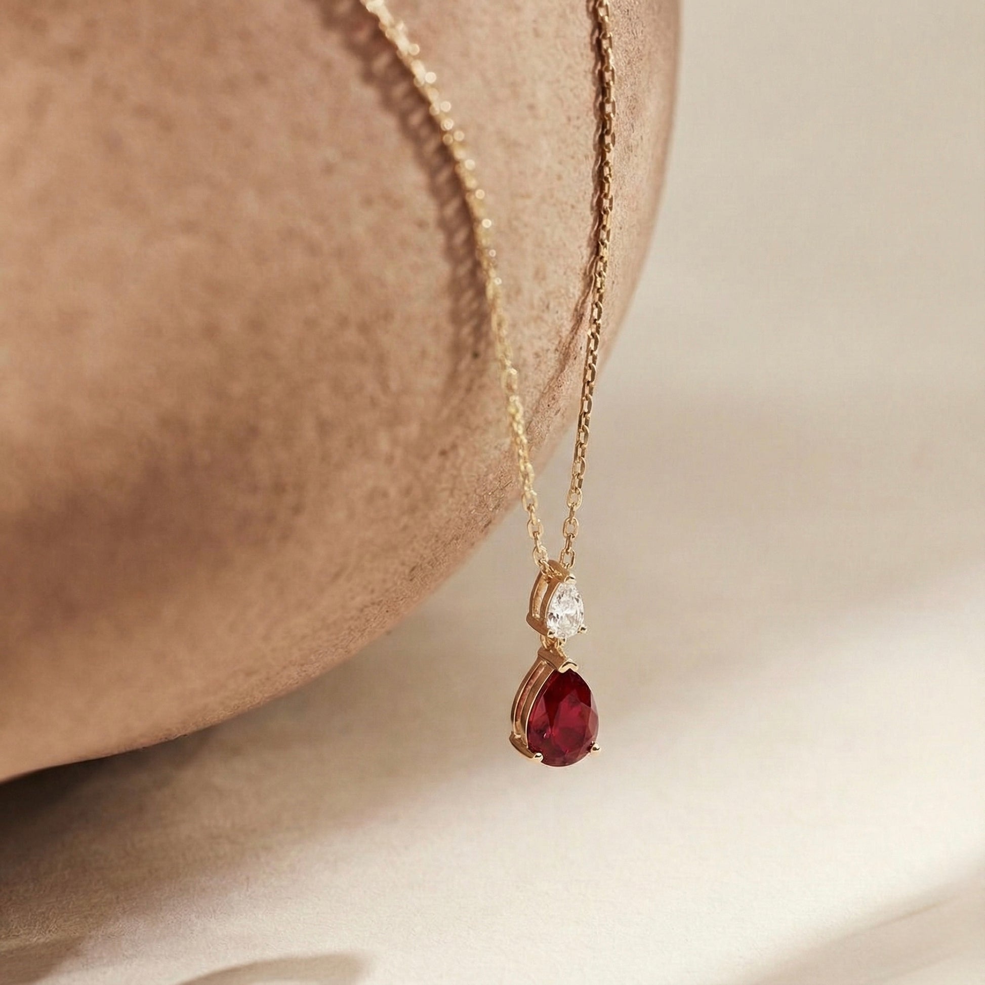 Kırmızı Damla Doğum Taşı Kolye - 14K Altın Kaplama
