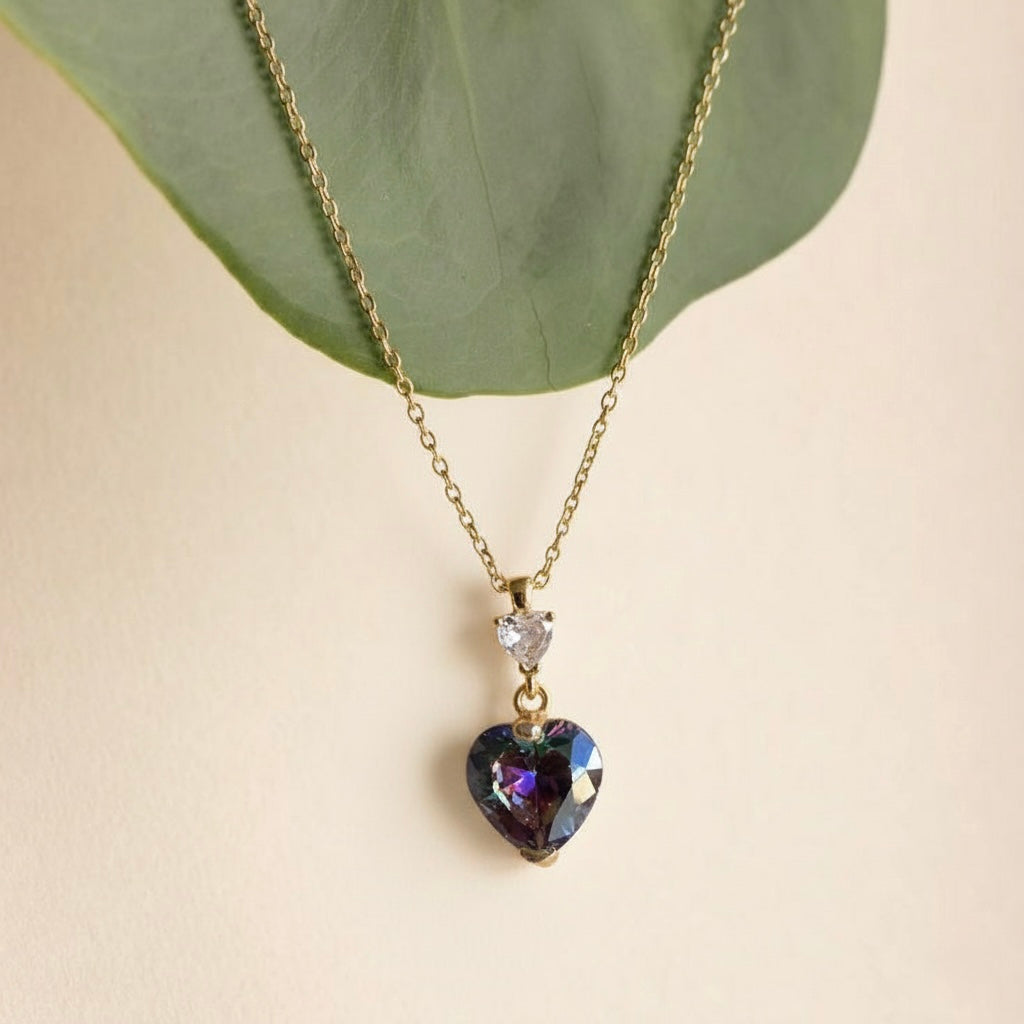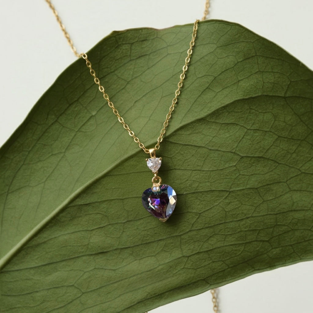 Gökkuşağı Kalp Kolye - 14K Altın Kaplama Gümüş