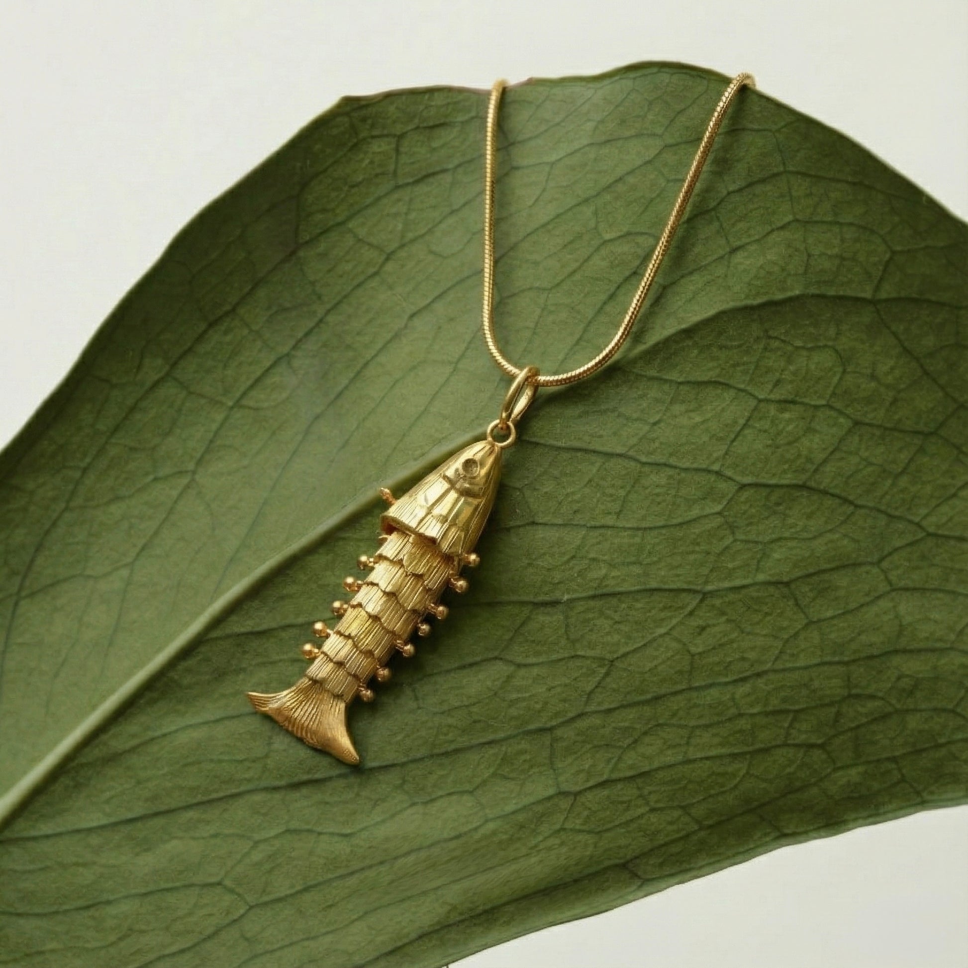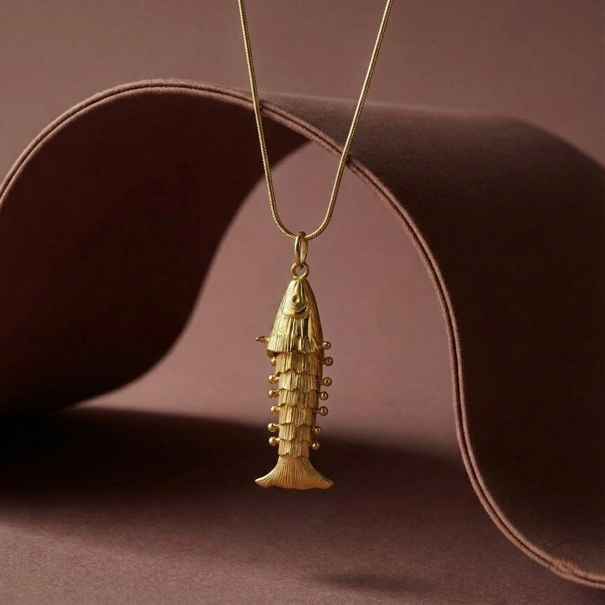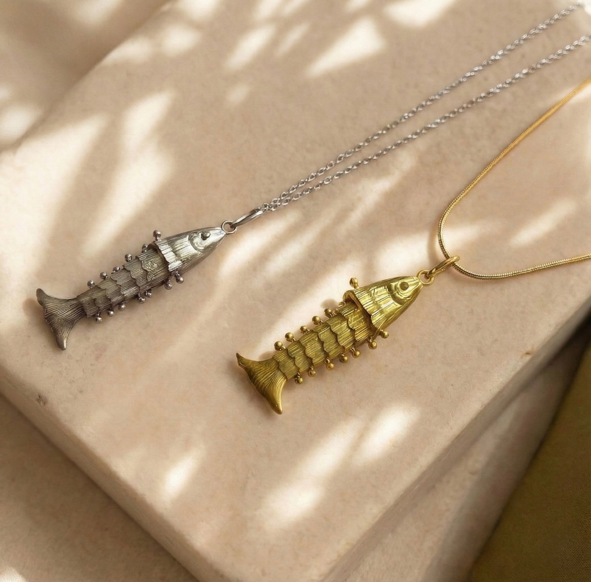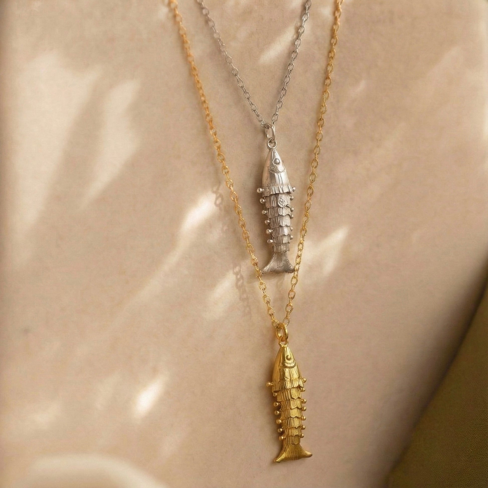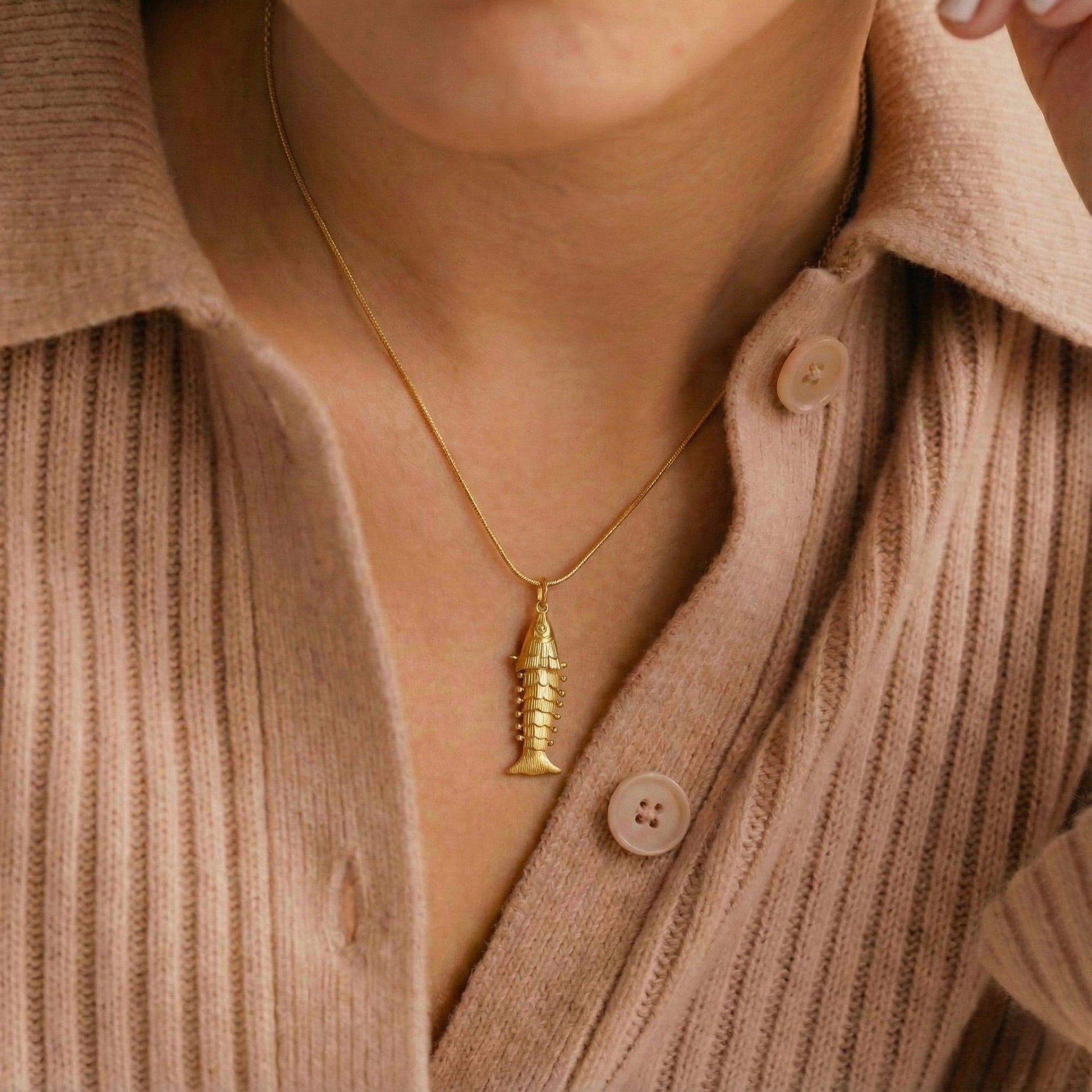 Bolluğun ve Özgürlüğün Işıltılı Sembolü Denizin bereketini ve akışın gücünü boynunuza taşıyın. İnce işçilikle hazırlanan eklemli yapısı sayesinde her hareketinizle hayat bulan bu balık figürü, 14K altın kaplamanın sıcaklığıyla birleşerek stilinize dinamik ve sofistike bir dokunuş katar.