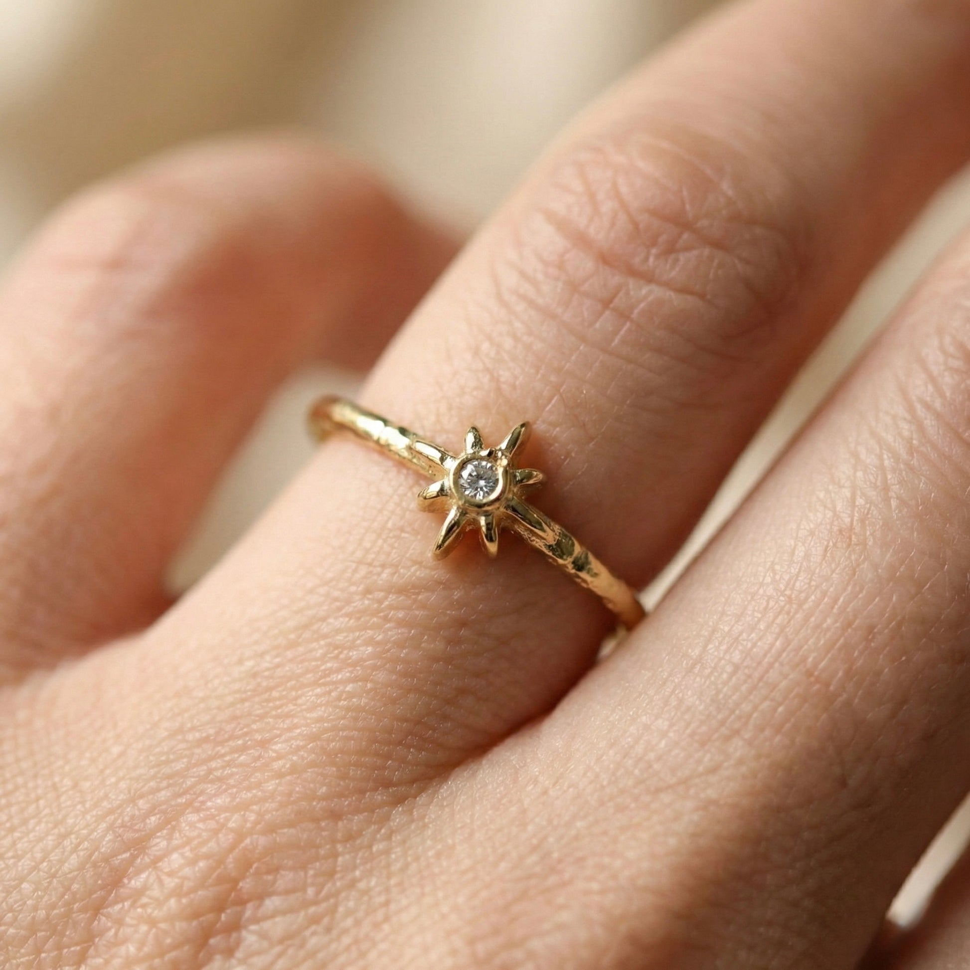 Karanlığı aydınlatan en parlak yıldızdan ilham alan bu tasarım, stilinize zarif bir ışık ve rehberlik katar. Merkezindeki parıltılı taş, el işçiliğiyle dokulandırılmış bant yapısıyla birleşerek "Sessiz Lüks" estetiğini parmağınıza taşır. Hem tek başına asil bir duruş sergiler hem de diğer yüzüklerle kombinlemek için karakterli bir parça olarak öne çıkar. Her bir Minon parçası usta zanaatkarların elinde şekillenir; bu nedenle el işçiliğinin doğasından kaynaklanan minik detay farklılıkları her tasarımı eşsiz ve size özel kılar.