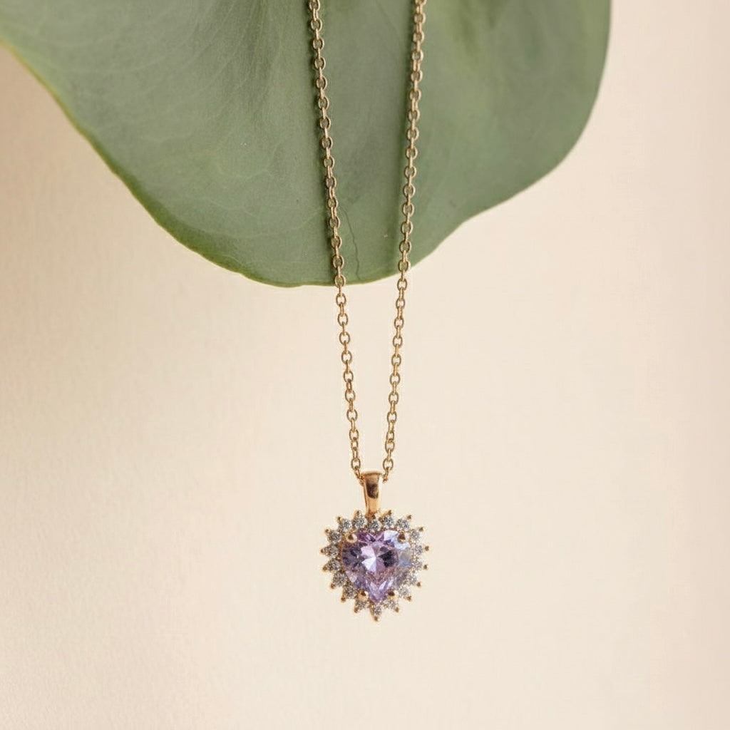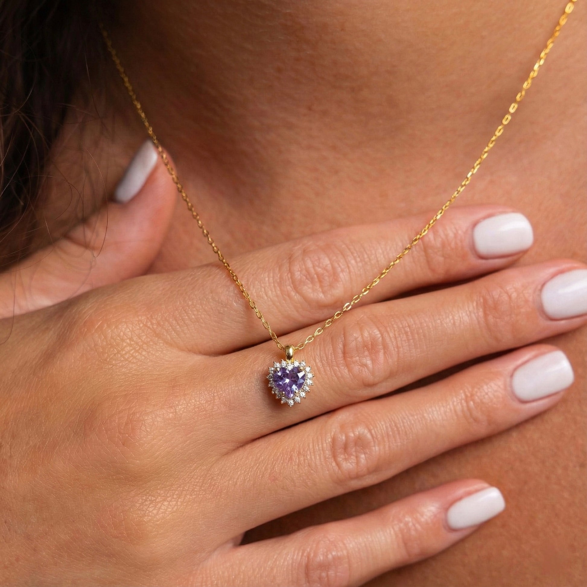 Işıltısı ve anlamıyla boynunuzda taşıyacağınız en özel parça. Minimalist kalp tasarımı ve mor taşın yumuşak enerjisi, günlük stilinize zarafet, özel anlarınıza ışıltı katmak için tasarlandı. Kendiniz veya sevdikleriniz için zamansız bir hediye.