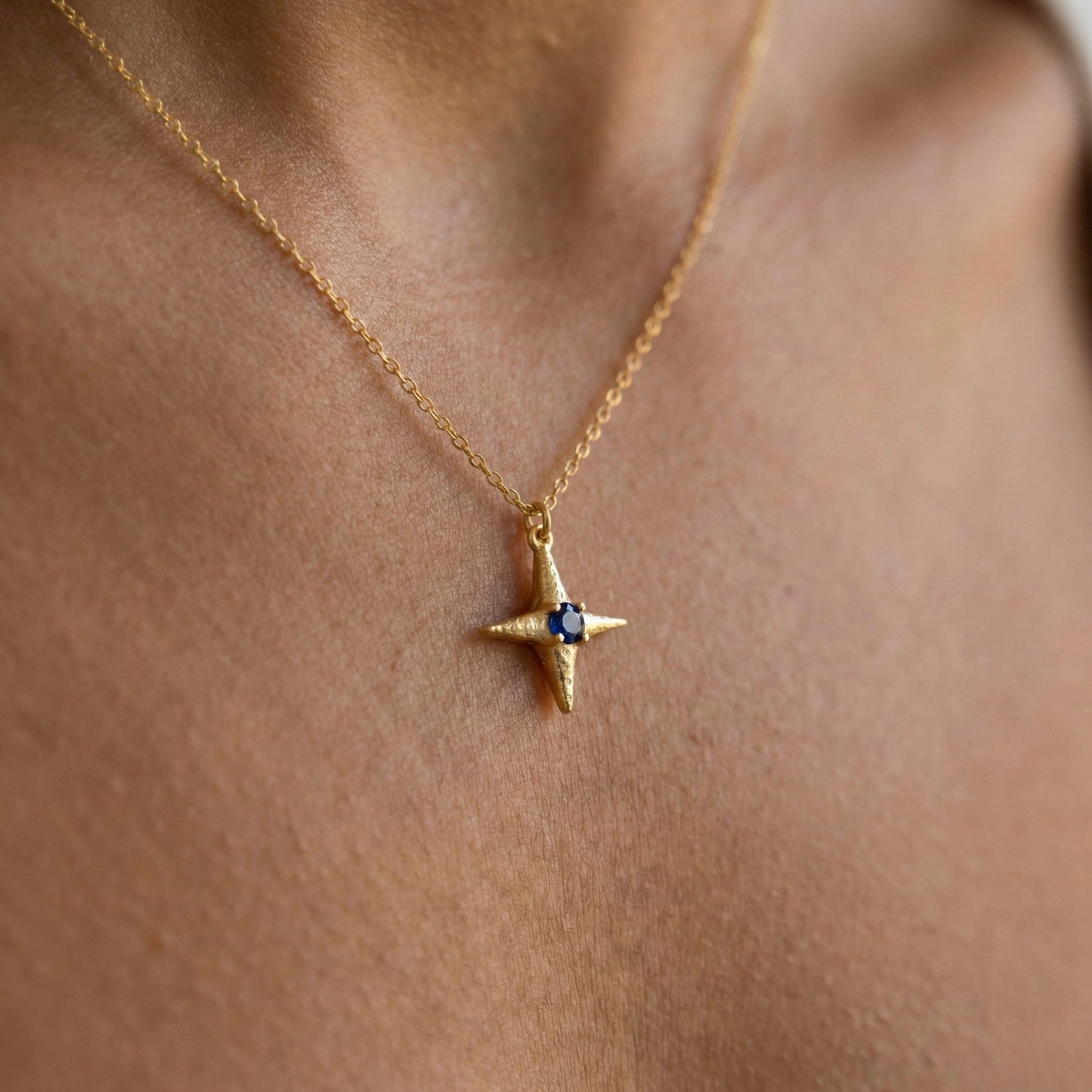 Gökyüzünün rehberlik eden ışığını ve okyanusun derin mavisini tek bir formda buluşturan bu tasarım, "az ama öz" diyenlerin yeni favorisi olmaya aday. Dört köşeli yıldız formunun üzerindeki ham ve organik doku, merkezindeki derin mavi taşla birleşerek boynunuzda zarif bir odak noktası yaratır. Minimalist çizgisi sayesinde her gününüze eşlik edebilecek kadar hafif, karakterli dokusuyla ise stilinizi tamamlayacak kadar iddialı bir parçadır. Her bir Minon parçası usta zanaatkarların elinde şekillenir; bu nedenle el işçiliğinin doğasından kaynaklanan minik detay farklılıkları her tasarımı eşsiz ve sadece size özel kılar.